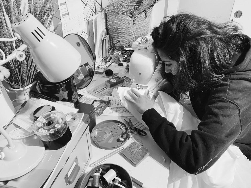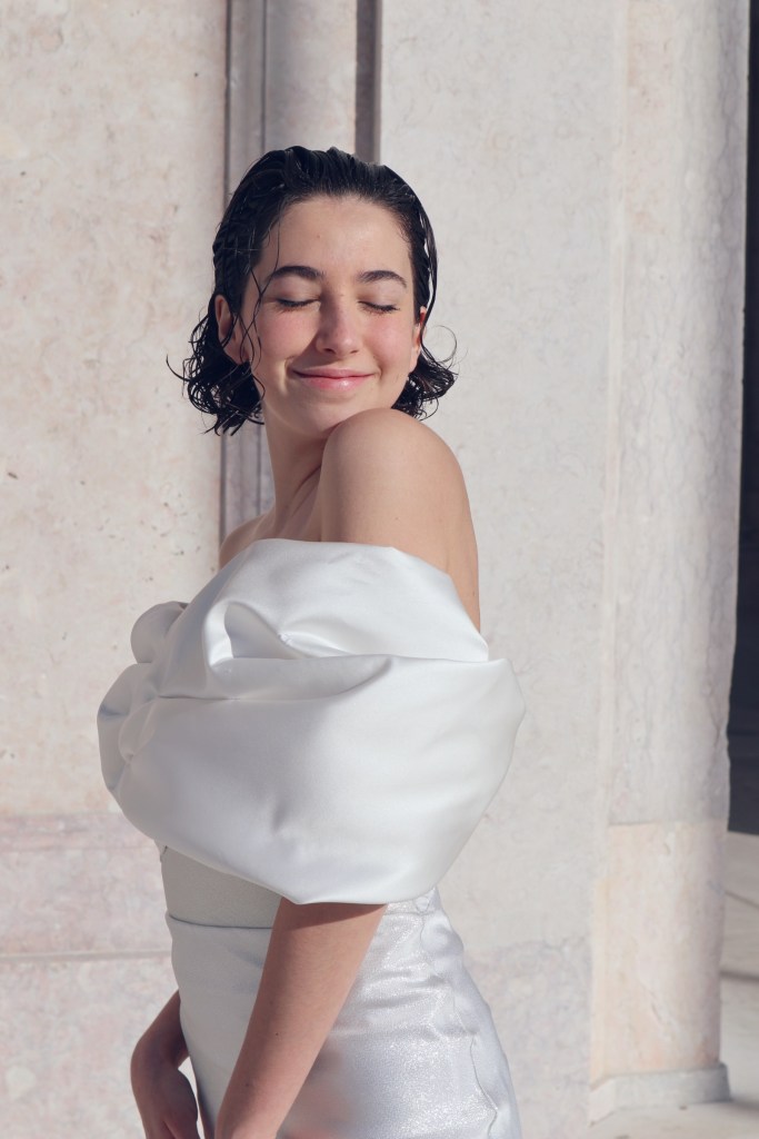 I just wanted to make it and maybe also because it’s SPARKELY. This dress is in two parts – the big white skirt is detachable. So you can have a party dress or if you want a big gown, you just have to add the white skirt. Which obviously makes it look like a wedding dress afterwards.